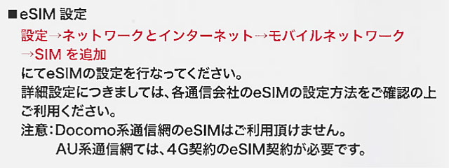 2回目(2/23)の検索で Google AI が「できる」と回答したのは、これが根拠なのかもしれません。5G 契約の au はダメだけど 4G 契約なら eSIM でも使えるということでした。